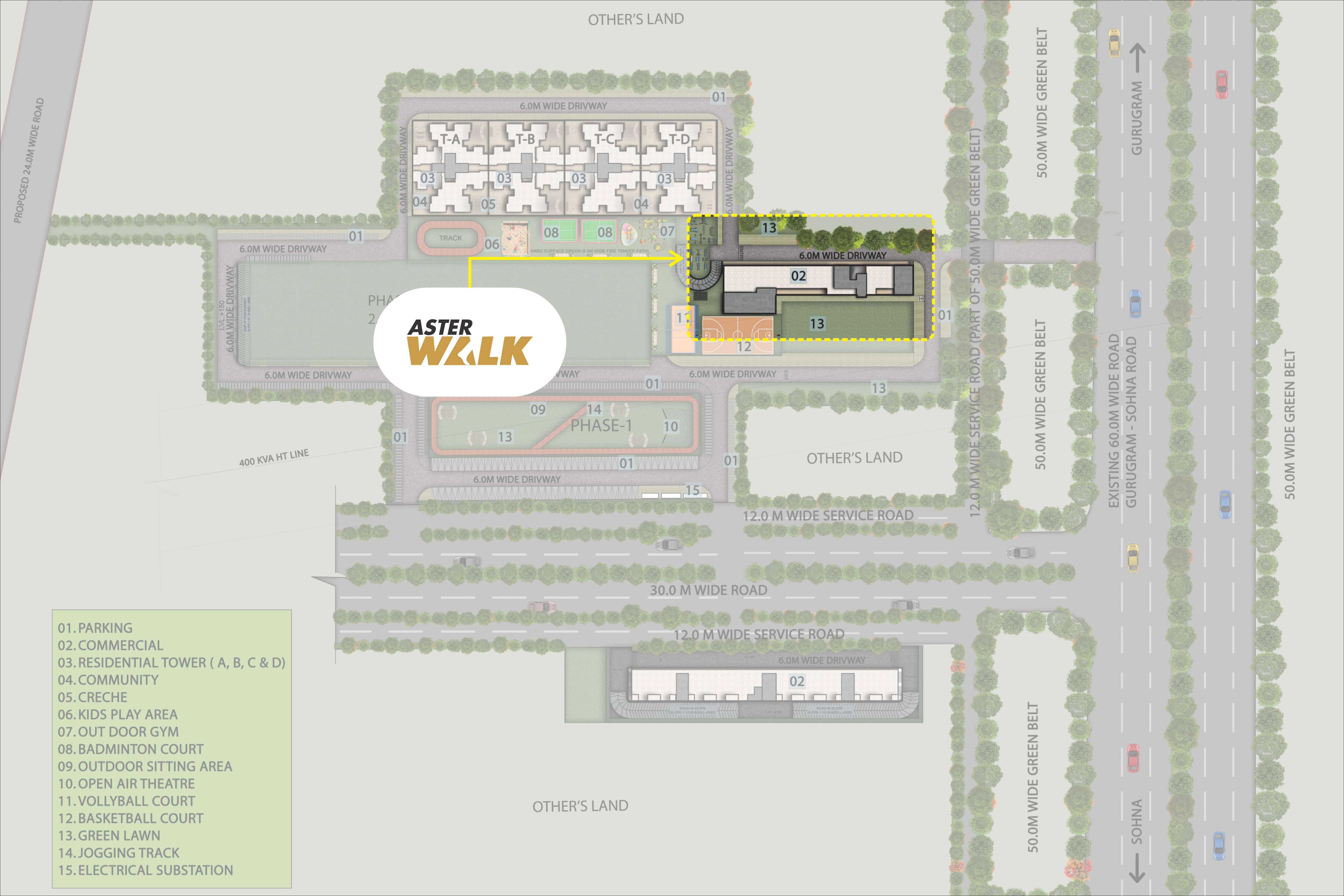 4S Asterwalk, a new commercial project by 4S Developers, is set to redefine the retail landscape in Sector 36, Sohna, South Gurugram. As part of the larger 4S Aster Avenue residential community, this project is strategically designed to cater to the daily needs of a growing and affluent population. Spanning 9.6 acres, Asterwalk offers a variety of high-street retail shops and commercial spaces, making it a prime destination for businesses and a lucrative investment opportunity